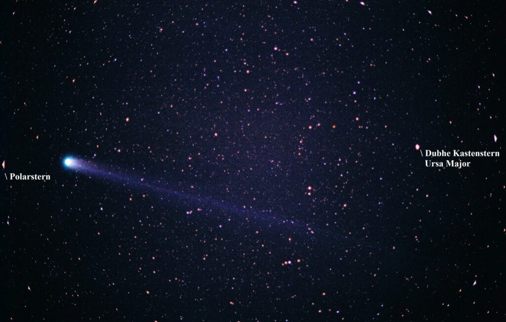 Das erste Tornescher Astrofoto wurde von Olaf Tamschick am 26.03.1996 gemacht. Es zeigt den Kometen Hyakutake. Der Komet hatte einen besonders langen Schweif, dieser reichte vom Polarstern bis zum großen Wagen. Leider hatten wir wenig Gelegenheit, ihn zu beobachten, eigentlich nur an dem Tag, an dem das Foto entstand.