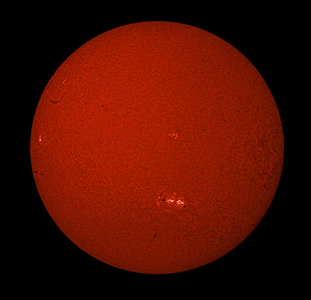 Sonne mit Sonnenfleckengruppe 22.08.2015 in H-Alpha, aufgenommen in der Sternwarte Tornesch mit einem Lunt LS 60