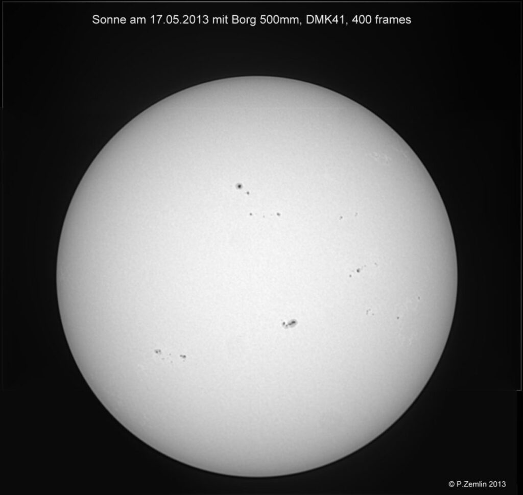 Am Sonnendurchmesser von rund 1,4 Millionen km kann man gut abschätzen, wie groß die zur Zeit zahlreichen Sonnenflecken sind.
