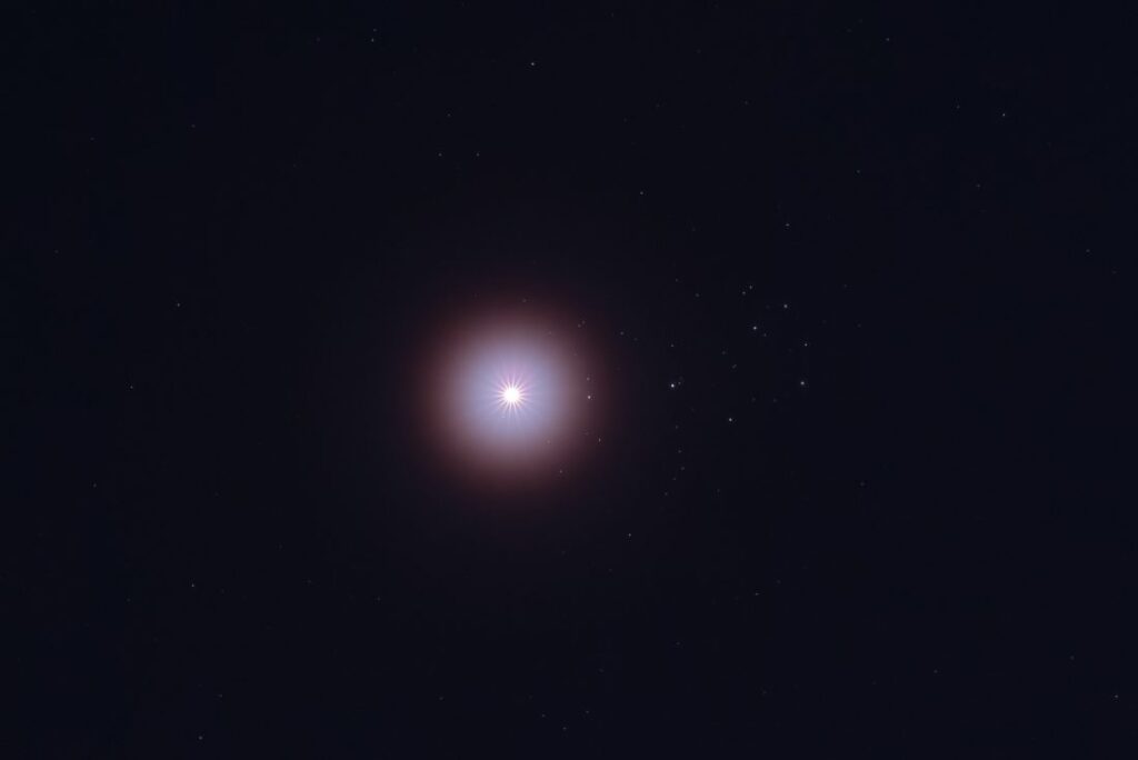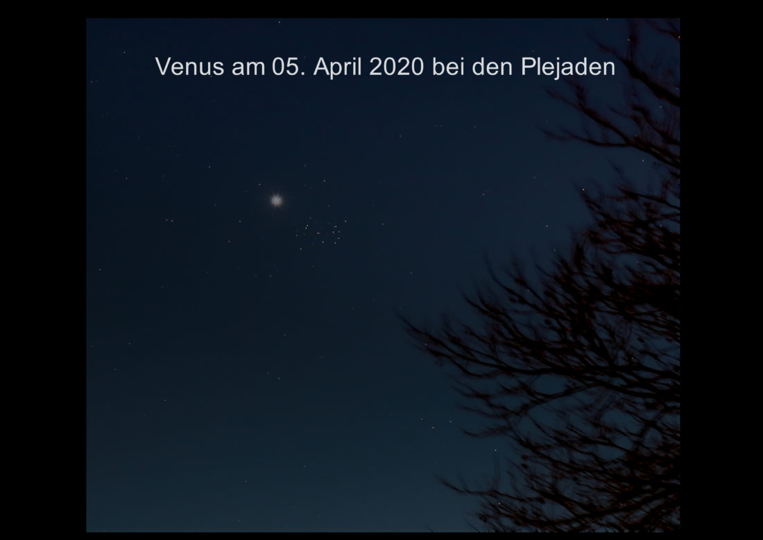 Konstellation Venus in den Plejaden (M45) am 04.04.2020 am leicht dunstigen Himmel