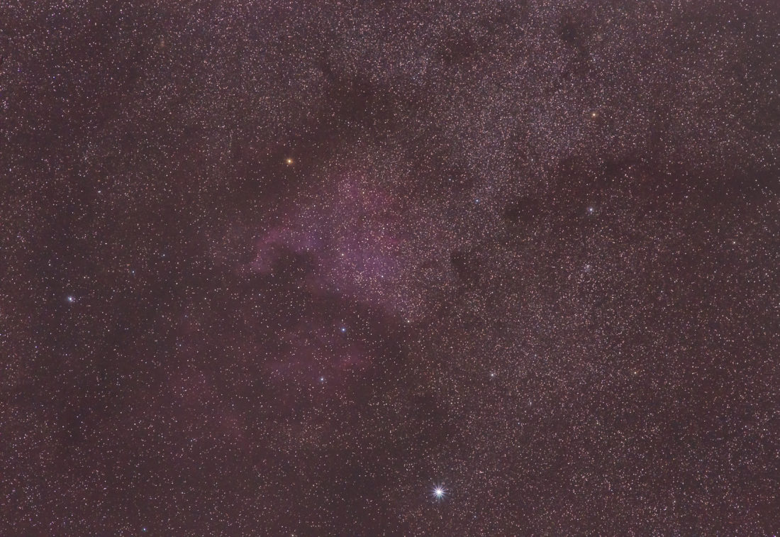 Denebvon RVSTin Widefield Aufnahmenan Veröffentlicht am 12. März 2025 Übersichtsaufnahme Deneb mit NGC7000, Canon EOS 6D, 200 mm, Gesamtbelichtungszeit ca. 12 Minuten Aufnahme: Peter Zemlin
