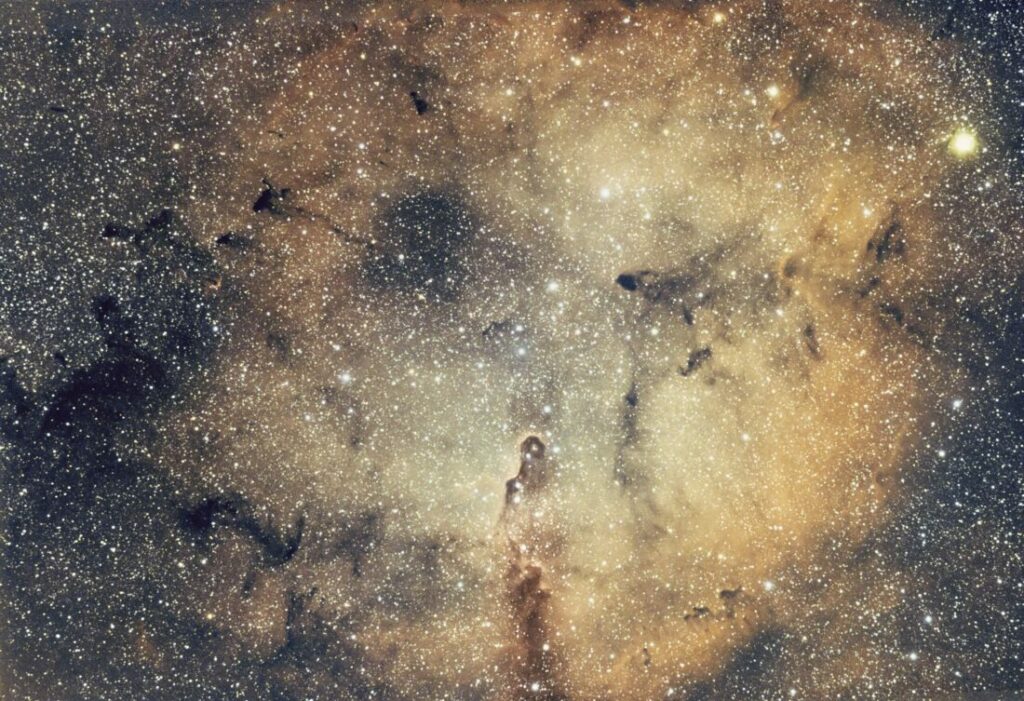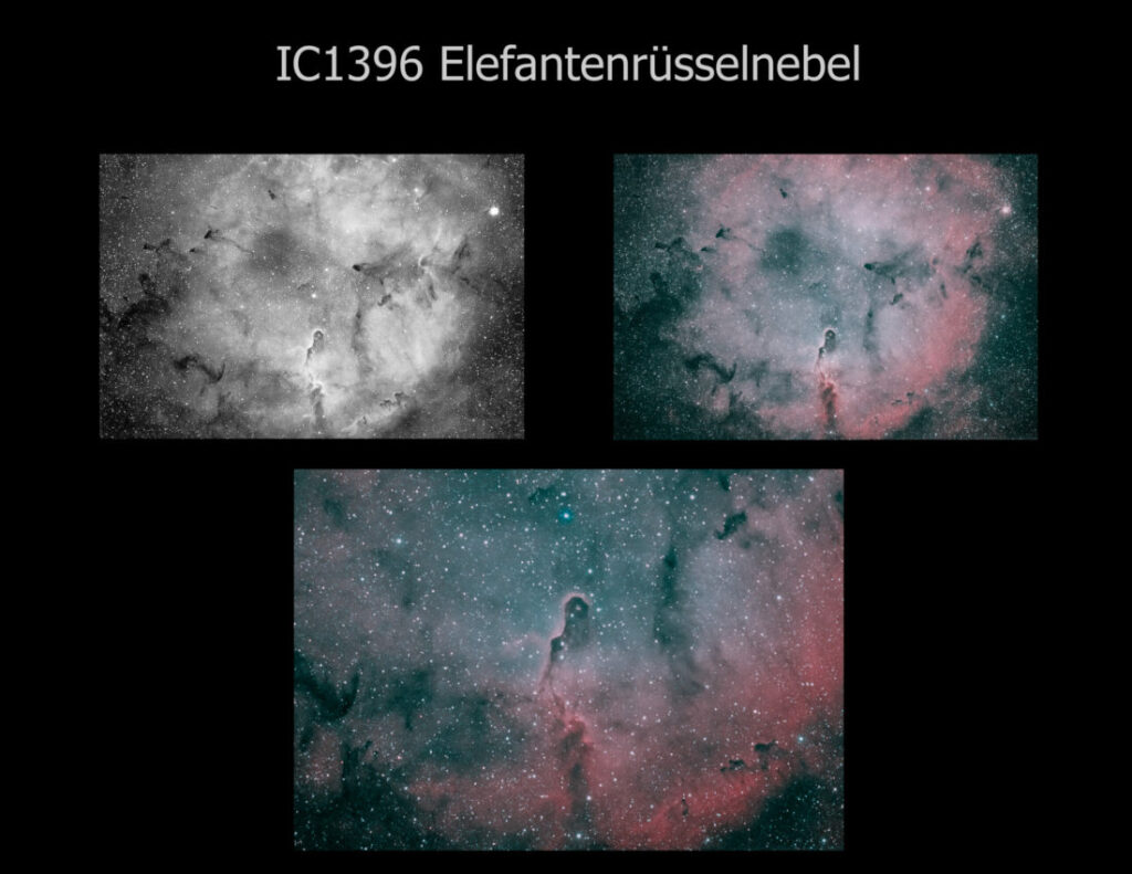 Elefantenrüsselnebel IC1396 – aufgenommen vom 4. Bis 6 September 2023 in Tornesch. Insgesamt 68 Aufnahmen mit dem L-extreme Filter á 240 Sek. und RGB 14 Aufnahmen á 120 Sek. (Gesamtbelichtung 5 h). Aufgenommen mit 432mm Refraktor von Lacerta, Öffnung 72mm und ASI2600 MC Pro (betrieben bei -10°C).