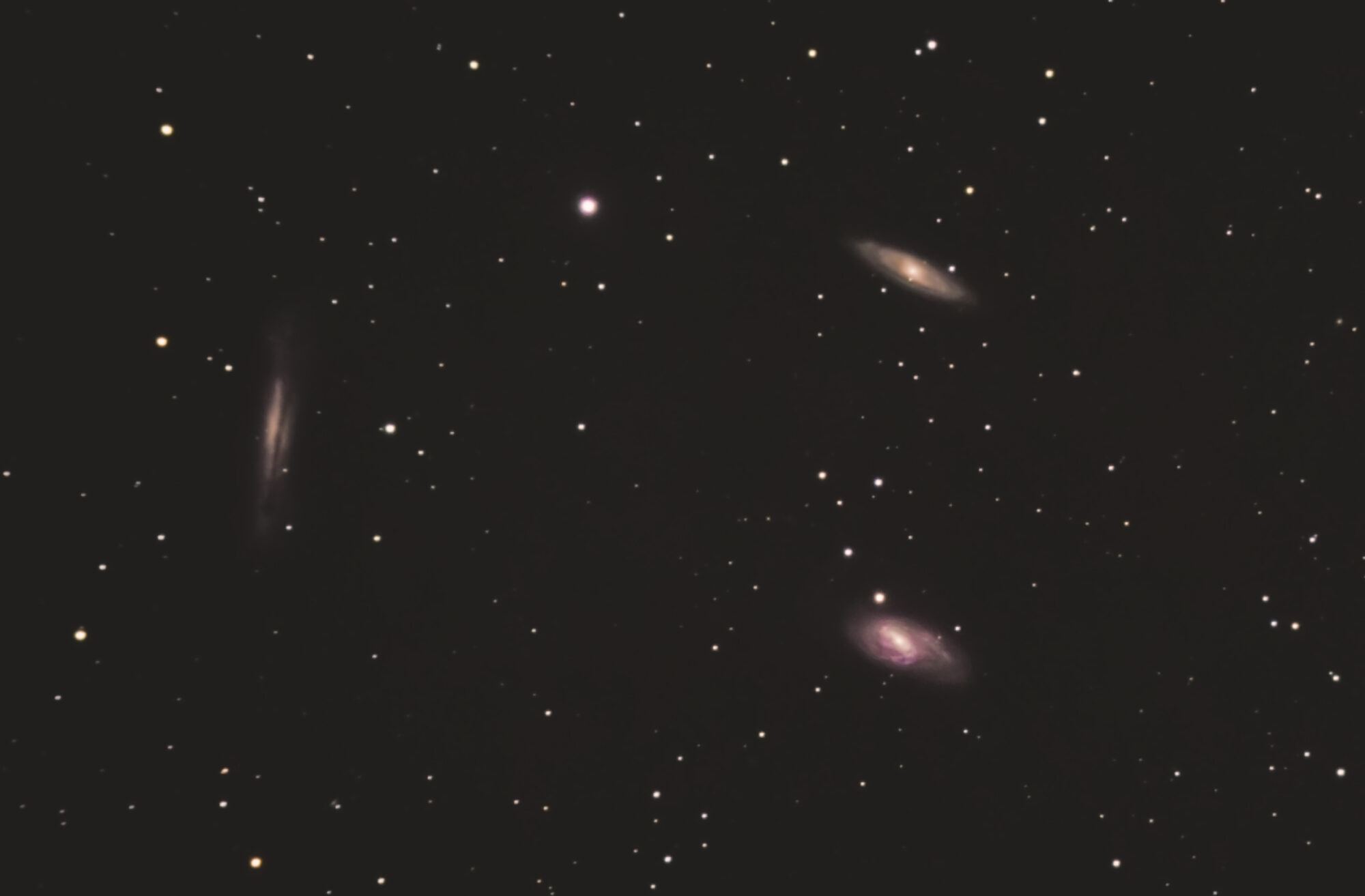 Leotriplett – Galaxiengruppe M 65 M66 und NGC 3628 im Sternbild Löwe, aufgenommen am 08.04.2019 in der Sternwarte Tornesch mit einem 3-Zoll-ED-Refraktor von Borg 76/500, Gesamtbelichtungszeit: 62 Minuten