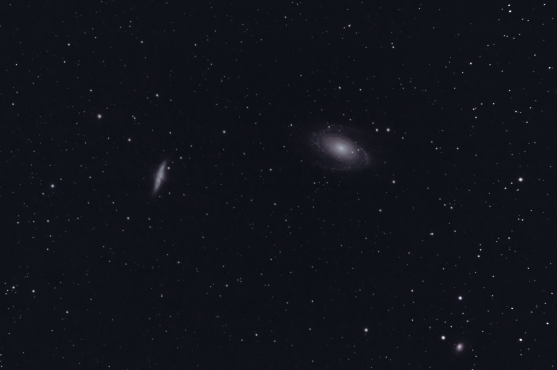 Bodes- und Zigarrengalaxie M81 und M82, aufgenommen am 26.02.2019 in der Sternwarte Tornesch mit einem 3-Zoll-ED-Refraktor von Borg 76/500, Gesamtbelichtungszeit: 52 Minuten