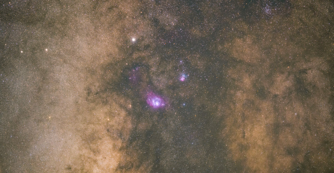 Die Aufnahme der Milchstraße entstand am 29.09.2019 während eines Urlaubes in Finikounda, Messenien, Griechenland. Schön zu sehen sind die beiden Emissions- und Reflexionsnebel im Sternbild Schütze M 8 (Lagunennebel) sowie M 20 (Trifidnebel), Aufnahme mit Sony A7R, Samyang 135mm f2.0, IOptron Skytracker Pro, gestackt in Fitswork und Lightroom bearbeitet