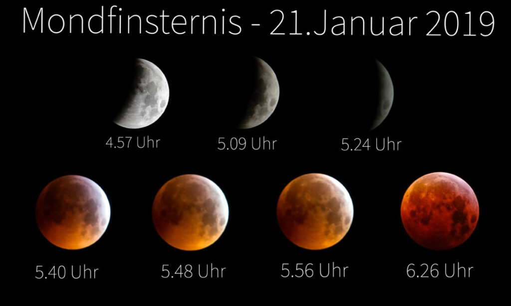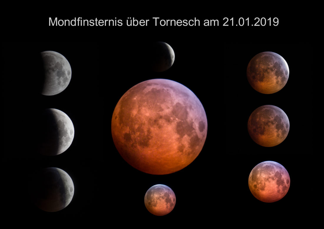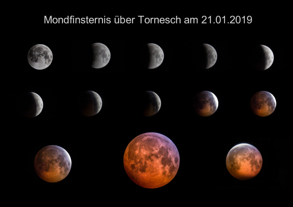 Mondfinsternis über Quickborn – Aufnahme und Zusammenstellung als Kollage: Karl Engeldinger