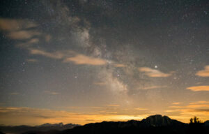 Die Astro-Landschaftsfotografie kombiniert Himmelsobjekte wie die Milchstraße, Planeten oder Sternbilder mit beeindruckenden irdischen Landschaften. Dafür werden meist Weitwinkelobjektive und lichtstarke Kameras genutzt, um in kurzer Zeit viel Licht einzufangen. Eine stabile Nachführung ist nicht nötig, wenn mit kurzen Belichtungszeiten und hohen ISO-Werten gearbeitet wird. Besonders eindrucksvoll sind Startrails, die durch lange Belichtungen oder Serienaufnahmen entstehen und die scheinbare Bewegung der Sterne am Himmel zeigen. Vordergrundelemente wie Berge oder Bäume verleihen den Aufnahmen zusätzliche Tiefe und machen sie noch beeindruckender.