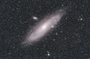 Galaxien sind faszinierende Deep-Sky-Objekte, die oft aus Milliarden von Sternen bestehen. Ihre Fotografie erfordert lange Belichtungszeiten, eine stabile Nachführung und ein lichtstarkes Teleskop mit hoher Auflösung, um feine Strukturen wie Spiralarme sichtbar zu machen. Während nahe und helle Galaxien wie Andromeda (M31) auch mit geringeren Brennweiten fotografiert werden können, benötigen lichtschwächere Galaxien größere Teleskope und empfindliche Kameras. Eine sorgfältige Bildbearbeitung hilft, schwache Details und Farben herauszuarbeiten, um die beeindruckende Vielfalt der Galaxien sichtbar zu machen.