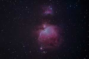 Nebel sind beeindruckende Deep-Sky-Objekte, die aus interstellarem Gas und Staub bestehen. Ihre Fotografie erfordert lange Belichtungszeiten, eine stabile Nachführung und oft spezielle Filter (z. B. H-alpha), um feine Strukturen sichtbar zu machen. Während große Emissionsnebel wie der Orionnebel (M42) bereits mit kleineren Brennweiten erfasst werden können, benötigen planetarische Nebel und Reflexionsnebel große und lichtstarke Teleskope. Eine sorgfältige Bildbearbeitung hilft, schwache Details und Farben herauszuarbeiten und die beeindruckende Vielfalt der Nebel sichtbar zu machen. Durch die Nutzung von Filtern können zudem die speziellen Emissionslinien von Wasserstoff, zweifach ionisiertem Sauerstoff und ionisierten Schwefelatomen isoliert werden und somit noch mehr Details herausgearbeitet werden.