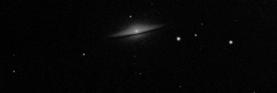 Eine Galaxie, deren Form einem Sombrero ähnelt, da man die Galaxiescheibe fast von der Seite sieht (genauer von leicht schräg „oben“) und sie in der Mitte durch ein schwarzes Band geteilt wird. Das schwarze Band entsteht durch Staub, welcher das Licht der dahinter liegenden Sterne abblockt.Das Foto hier stellt nur ein bescheidenes Abbild dieser zauberhaften …