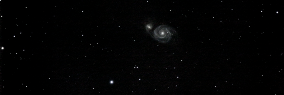 Whirlpoolgalaxie im Sternbild Jagdhunde (M51) , aufgenommen am 15.04.2020 in der Dachfenster-Sternwarte Elmshorn mit einem ED Refraktor 120/900, Canon EOS, 20 x 20 Sek., gestackt mit DSS, Nachbearbeitung in Gimp