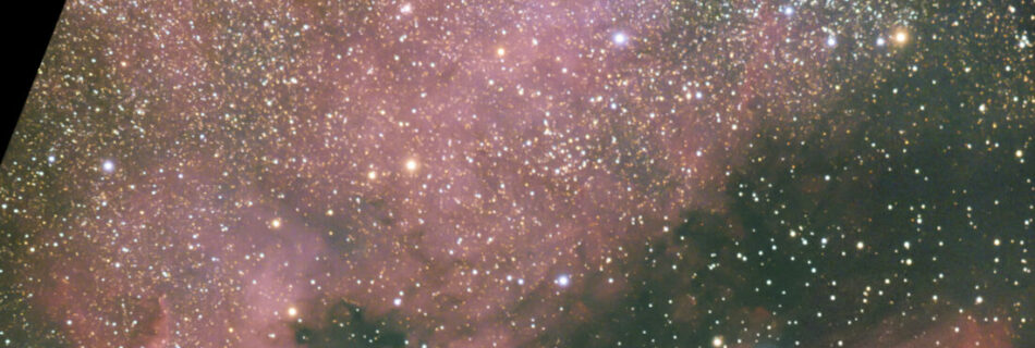 Mosaik Nordamerikanebel (NGC7000) und Pelikannebel (IC5070), Bearbeitung und Zusammenfügung als Mosaik mit dem Bearbeitungsprogramm APP sowie Nachbearbeitung in Lightroom. Aufgenommen am 24.10.2021 und 21.12.2021 in der Sternwarte Tornesch. Aufnahmen und Bildbearbeitung: Peter Zemlin