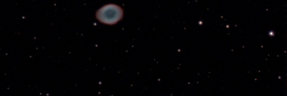 Ringnebel M 57 am 8.6.2023: Sogenannter Planetarischer Nebel, der entsteht, wenn ein Stern in seiner Spätphase als Roter Riese seine äußeren Schichten ins interstellare All bläst und der Sternenrest als Weißer Zwerg (im Zentrum des Nebels auf dem Foto erkennbar) endet, welcher das Gas der Expansionswolke mit seiner intensiven Strahlung zum Leuchten anregt.Fotografiert aus einer …