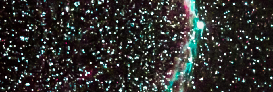 Teil des Cirrus Nebels, ein Supernovaüberrest im Schwan. Sichtbar das ganze Jahr über, beste Beobachtungszeit zwischen Juli und Dezember. Der Cirrusnebel (auch als Schleier-Nebel, englisch Veil nebula bezeichnet) ist der im optischen Spektrum sichtbare Teil des Cygnusbogens, einer Ansammlung on Emissions- und Reflexions-nebeln, die sich in einer Entfernung von rund 2400 Lichtjahren im Sternbild Schwan befinden. Sie sind zusammen der Überrest einer Supernova, die vor ca. 8.000 Jahren stattfand. …