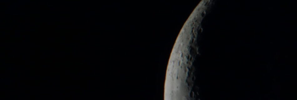 Mond am 26.11.2020, aufgenommen durch eine Wolkenlücke mit einer Sony RX100 in Pinneberg. Am 26.4.2020 gelang es unserem Sternwartenmitglied Andreas Proth gegen 21.30 Uhr den zunehmenden Mond; 1. Viertel, mit seiner Kleinbildkamera Sony DSR-RX100 (auf 100mm gezoomt) durch ein 12,5mm Okular an seinem Tasco-Newton (4,5“ mit 900mm Brennweite) aufzunehmen. Da bei einem Reflektor durch das …